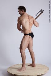 Swimsuit Fighting with axe Man White Standing poses - ALL Slim Short Brown Standing poses - simple Academic
